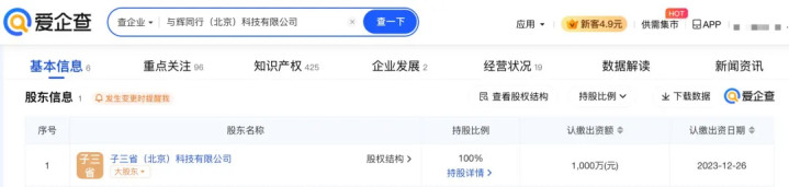 另据爱企查App显示,2025年2月,与辉同行(北京)科技有限公司发生工商变更,原全资股东董宇辉退出股东行列,新增子三省(北京)科技有限公司为股东并全资持股,董宇辉由直接持股变更为间接持股。企业受益股东显示,董宇辉仍为该公司最终受益人。此前媒体报道,与辉同行方面2月10日对此回应称,该变动为正常公司业务发展需要。