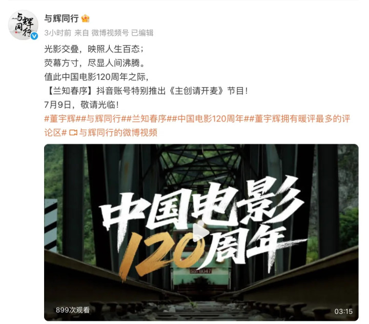 7月4日,@与辉同行发文:“[兰知春序]抖音账号特别推出《主创请开麦》节目!”据悉,该栏目将以电影为主题,带领观众一起走进电影的世界。截至发稿,“兰知春序”抖音账号粉丝量已超30万。