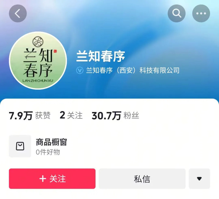 信息显示,该账号抖音平台已认证兰知春序(西安)科技有限公司。